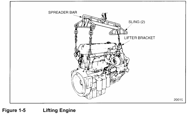 18. Lift the engine from its mounts using a suitable lifting device. See Figure 1-5.