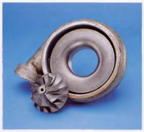 Any contact of the compressor contour is similar to the contact on the turbine housing and results from worn or failed shaft bearings.