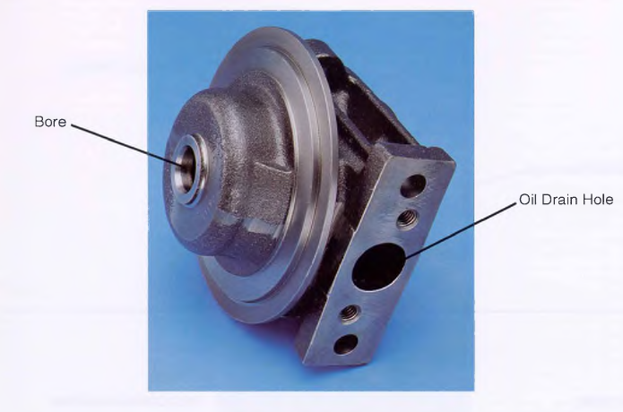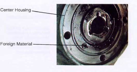 Lack of lubrication to the shaft bushings and journals due to foreign material in oil passage in the center housing.